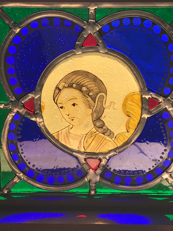古いイコンに描かれた天使を、小さなステンドグラスのパネル